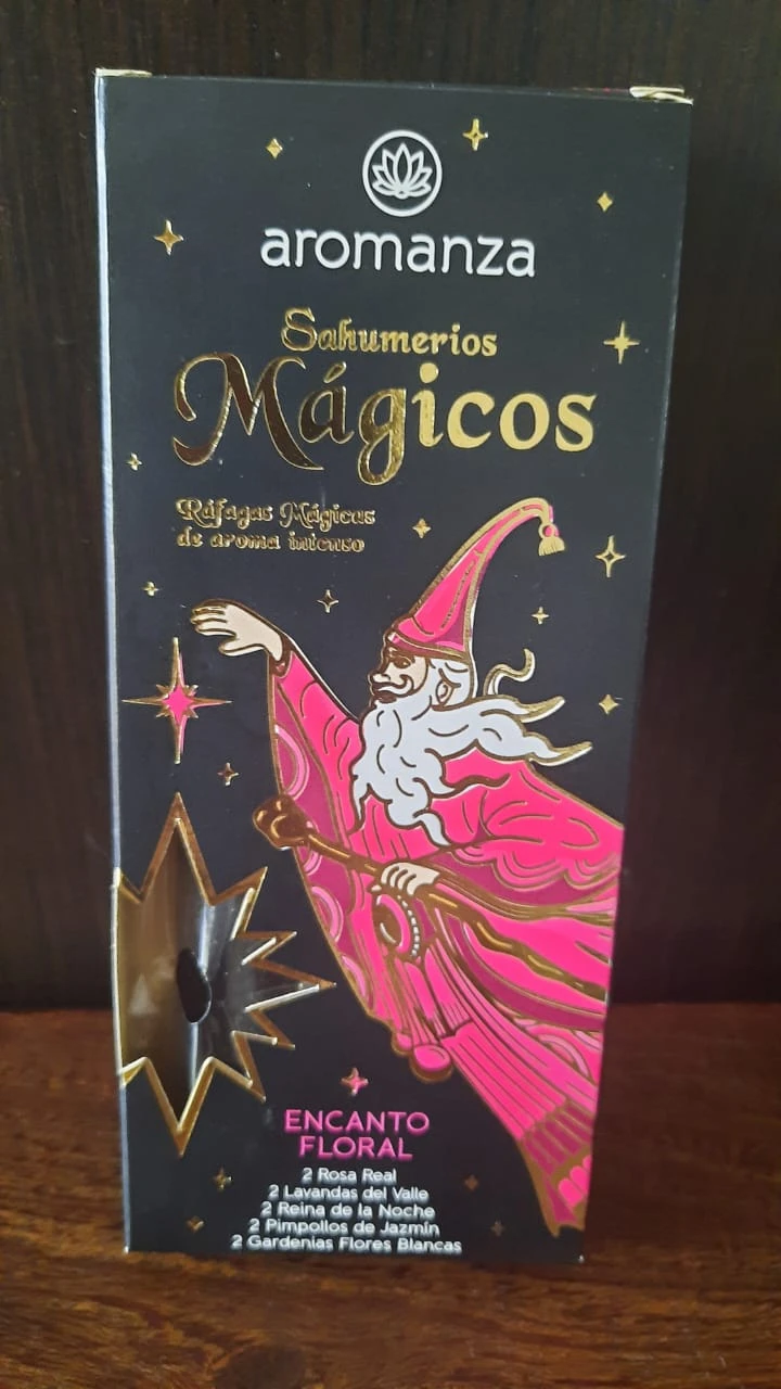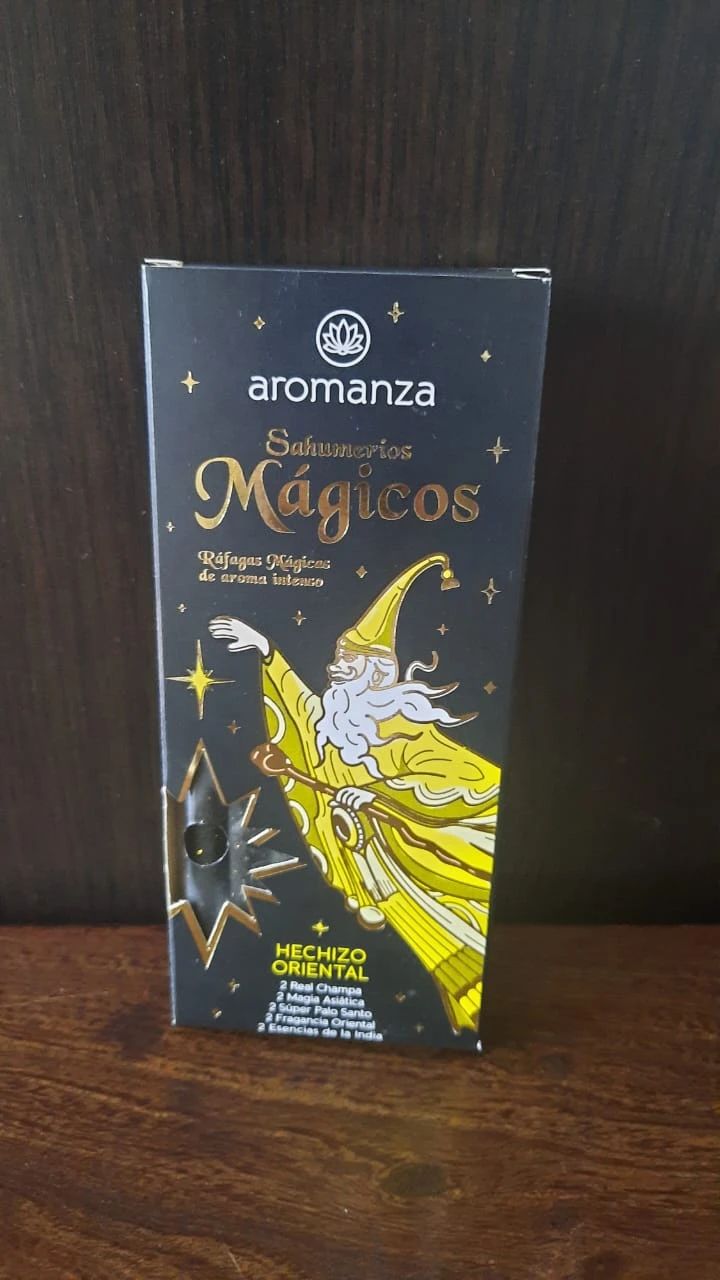 Los Sahumerios Mágicos Aromanza son varillas de incienso elaboradas con carbón vegetal 100% y 5 fragancias diferentes en cada caja, diseñadas para crear ambientes relajantes, purificar el aire y promover el bienestar. Cada caja contiene 10 varillas gruesas con un aroma intenso, una duración aproximada de 15 minutos, y un mensaje inspirador. La línea incluye diversas colecciones, como Aromas Mágicos, Hechizo Oriental, Encanto Floral, Deleite Frutal, y Sensaciones Divinas, cada una con una experiencia sensorial única.
